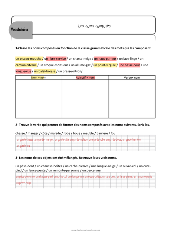 Les Noms Composes Correction