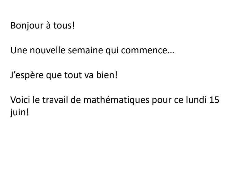Mathématiques Pour Lundi 15 Juin