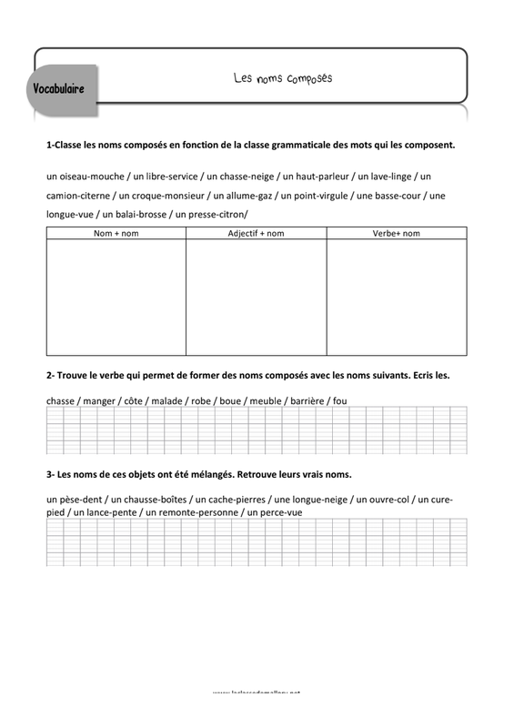 Voici pour aujourd'hui un travail sur les mots composés.