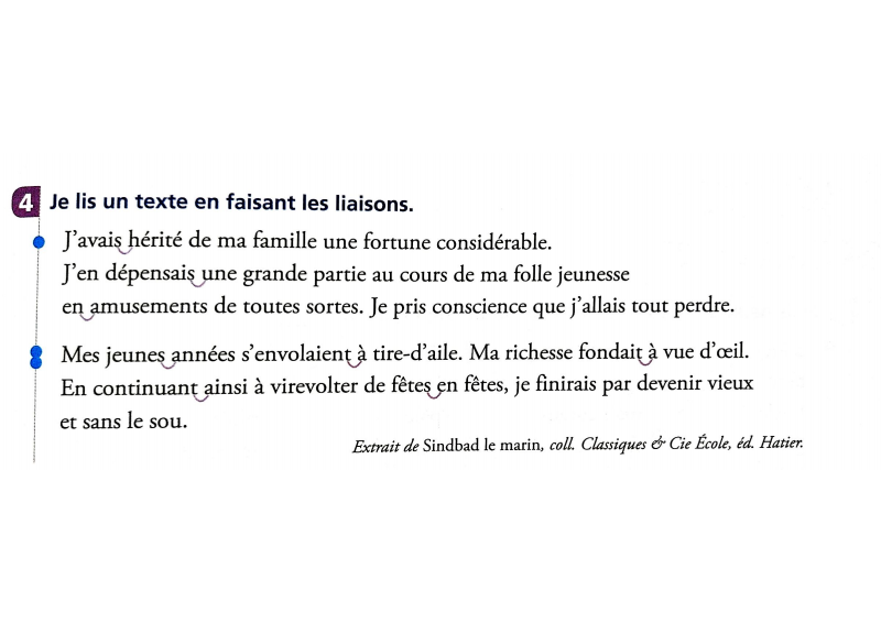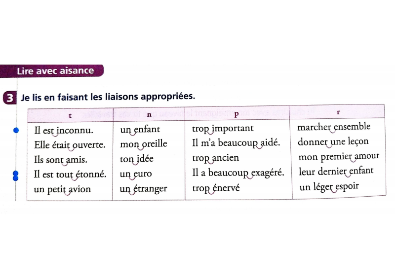 Tu peux t'entraîner avant, dans ta tête, à lire en faisant les liaisons s'il y en a.