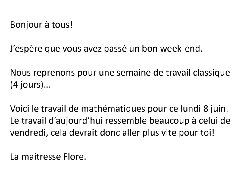 Mathématiques Pour Lundi 8 Juin