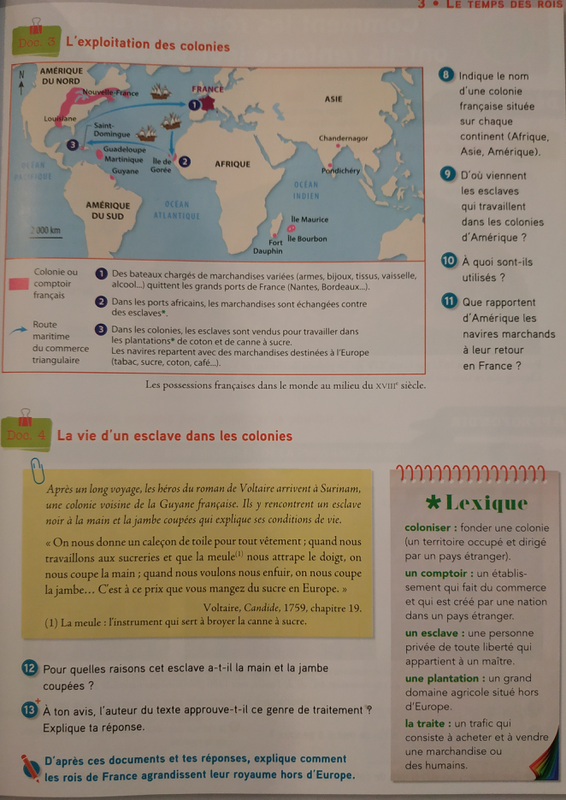 13) Voltaire, l'auteur du livre Candide dont est extrait ce texte, décrit les conditions de vie très dures des esclaves. Il montre par ce témoignage le décalage entre la vie de ces hommes esclaves à qui on coupe la main ou la jambe pour un rien, pendant que les Français, les plus riches, profitent du travail des esclaves sans rien savoir de ses conditions de vie horribles (c'est grâce à leur travail qu'ils mangent du sucre). Voltaire ne semble pas accepter ce genre de traitement.